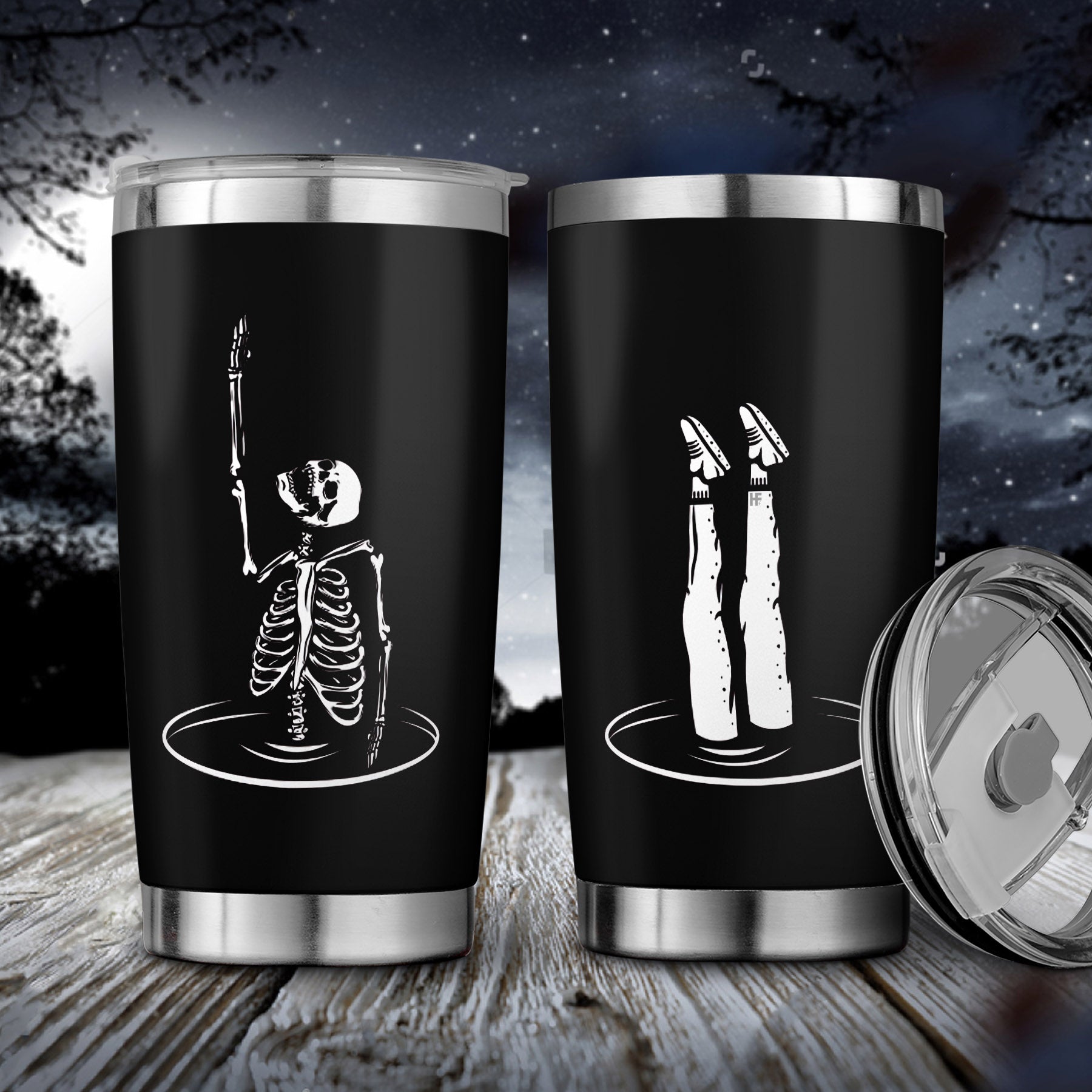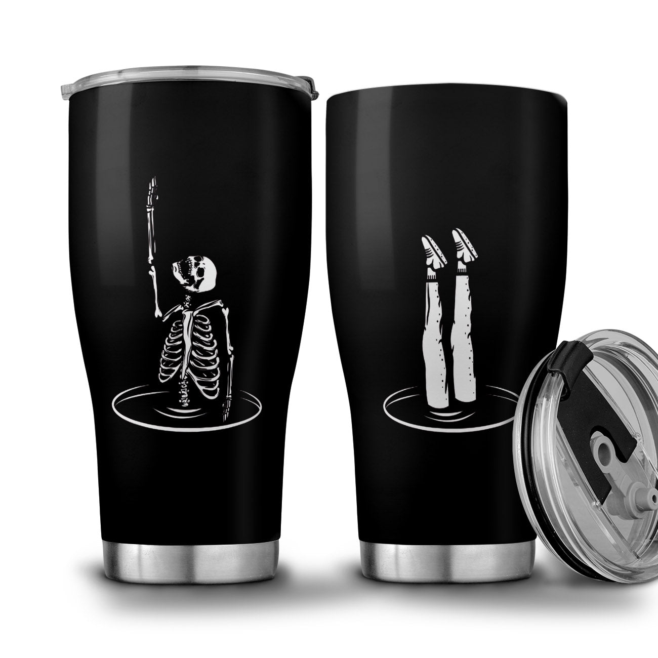 Teleporter Of Death Skull Stainless Steel Tumbler, Halloween Black And White Skeleton Stainless Steel Cup With Lid