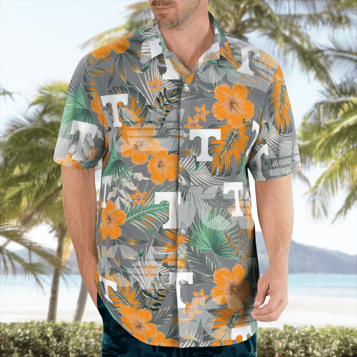 Tennessee Volunteers Logo All Over Print 3D Flowery Aloha Summer Beach Hawaiian Shirt – Gray-Tph