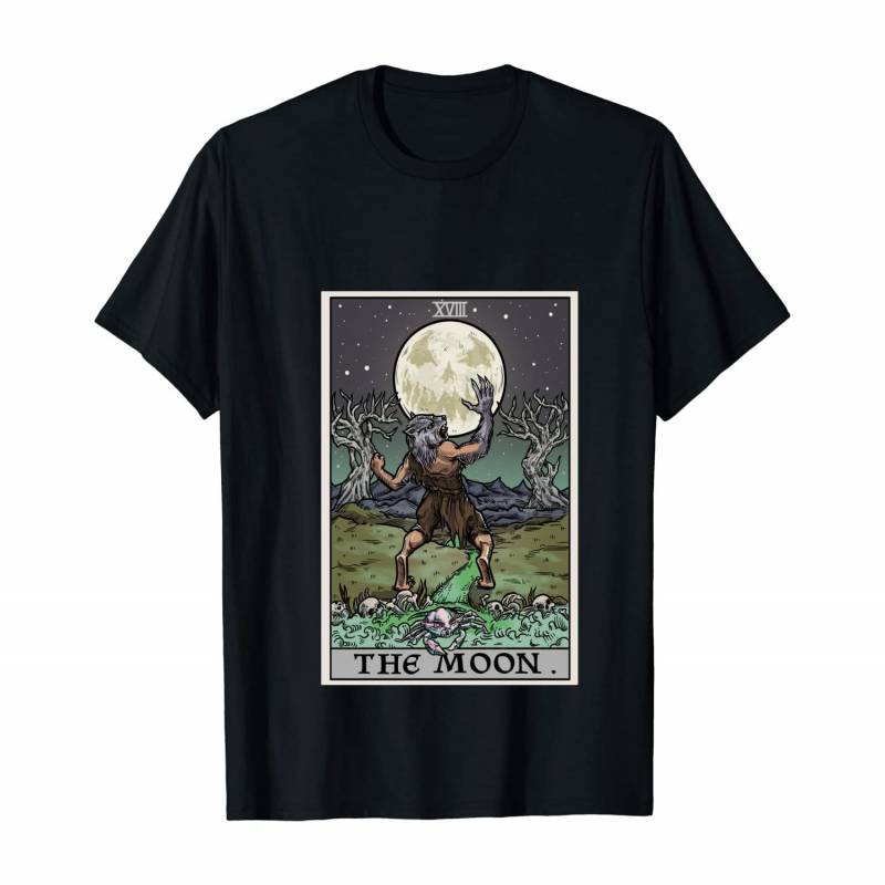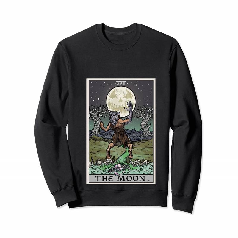 The Moon Tarot Card Halloween Werewolf Gothic Back Print Pullover Hoodie, T-Shirt, Sweatshirt