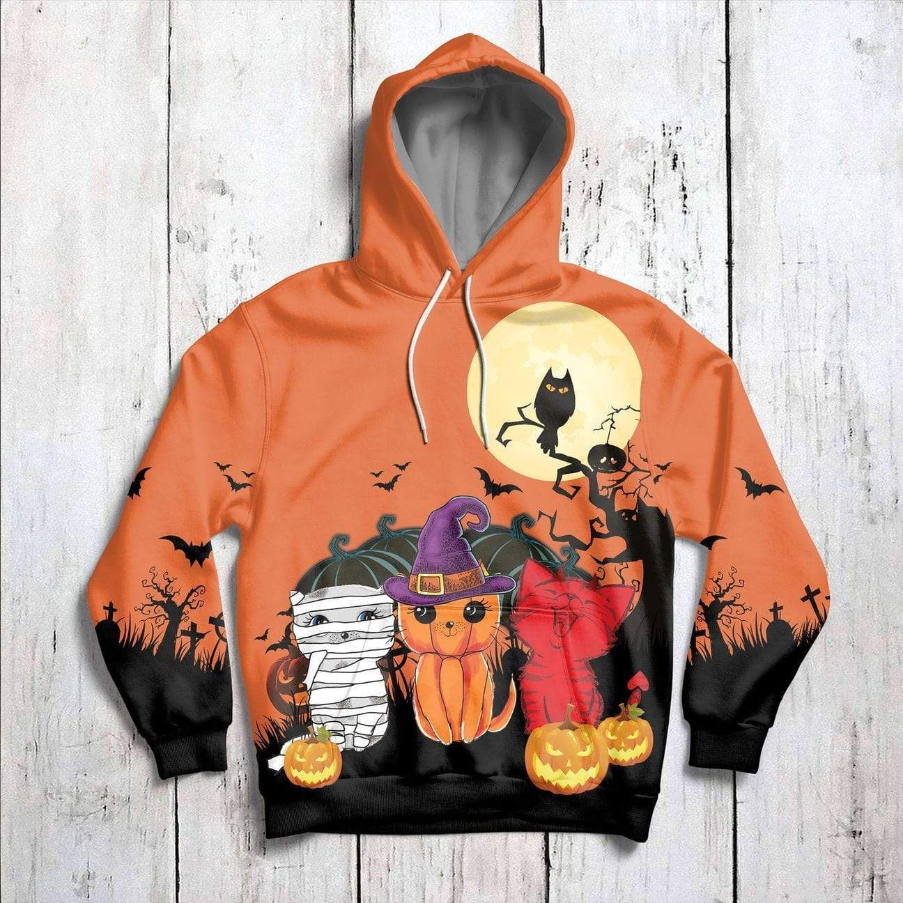 The Mummy Witch Kitty Halloween Orange 3D All-Over Print Unisex Hoodie