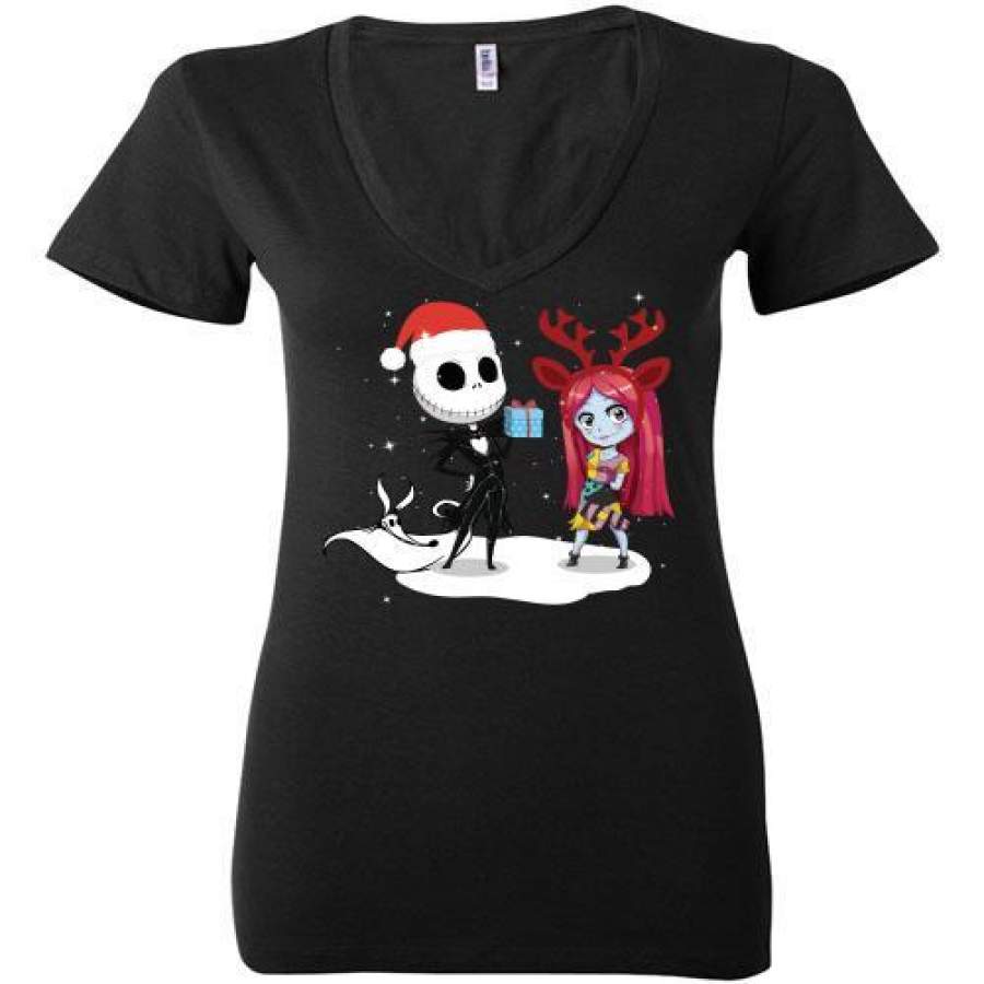The Nightmare Before Christmas Jack And Sally Xmas Gift Ladies Deep V-Neck