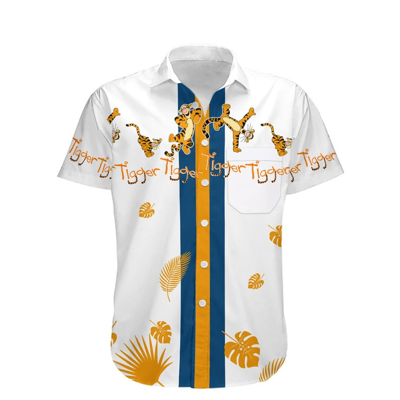 Tigger Winnie The Pooh Tropical Leaf All Over Print 3D Combo Hawaiian Shirt & Beach Shorts – White Blue