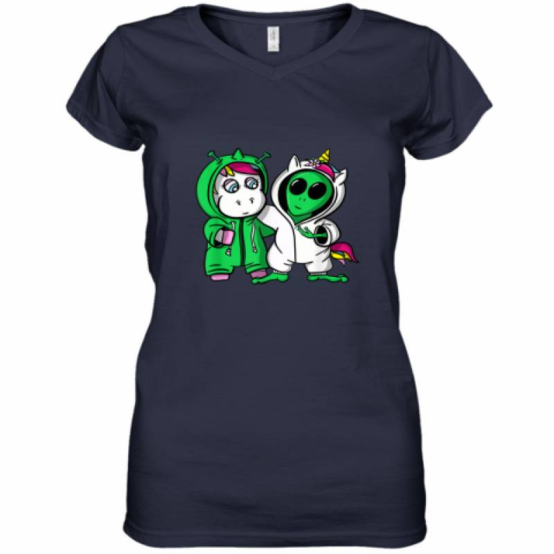 Unicorn Alien Halloween Friends Costume Cryptid Creatures shirt Women's V-Neck T-Shirt