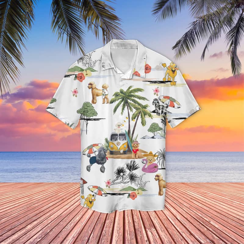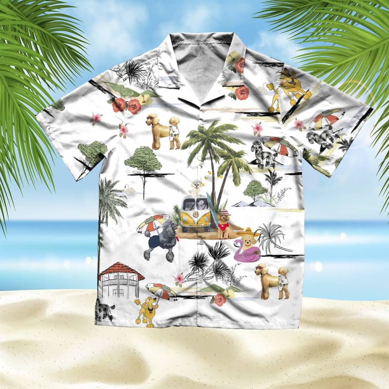 Unisex Poodle Beach Hawaiian Shirt, Poodle Lover Hawaiian Shirt, Aloha Shirt For Dog Lover