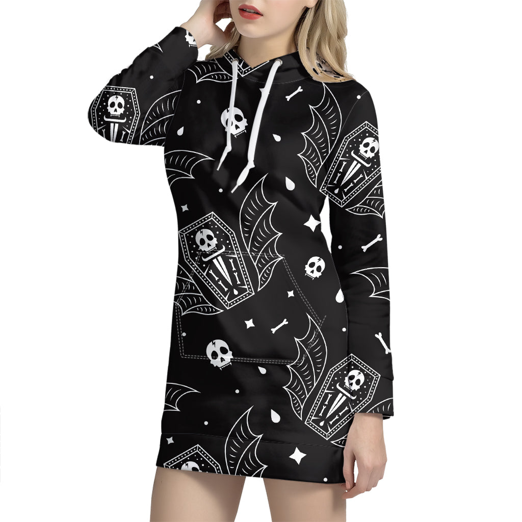 Vampire Coffin Pattern Print Women’S Pullover Hoodie Dress