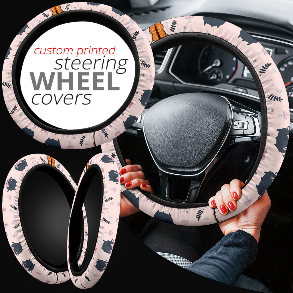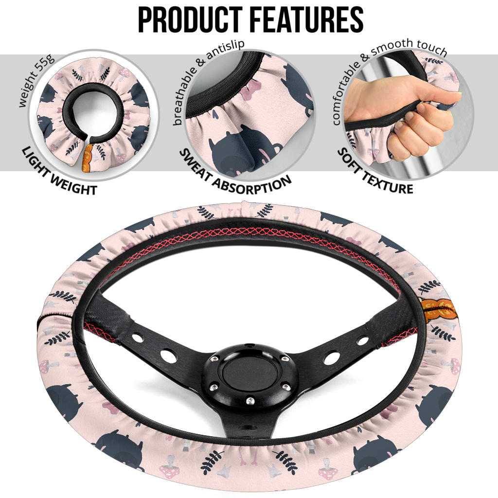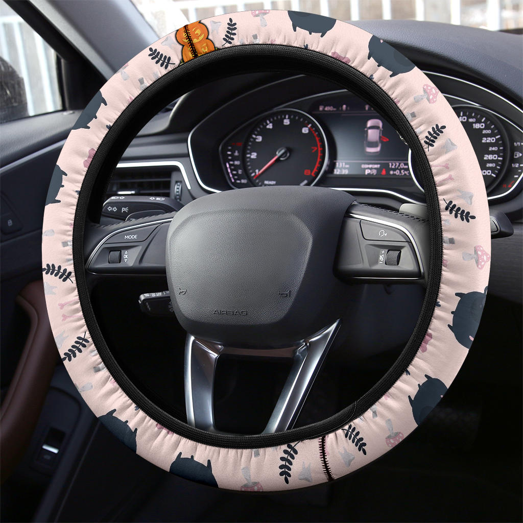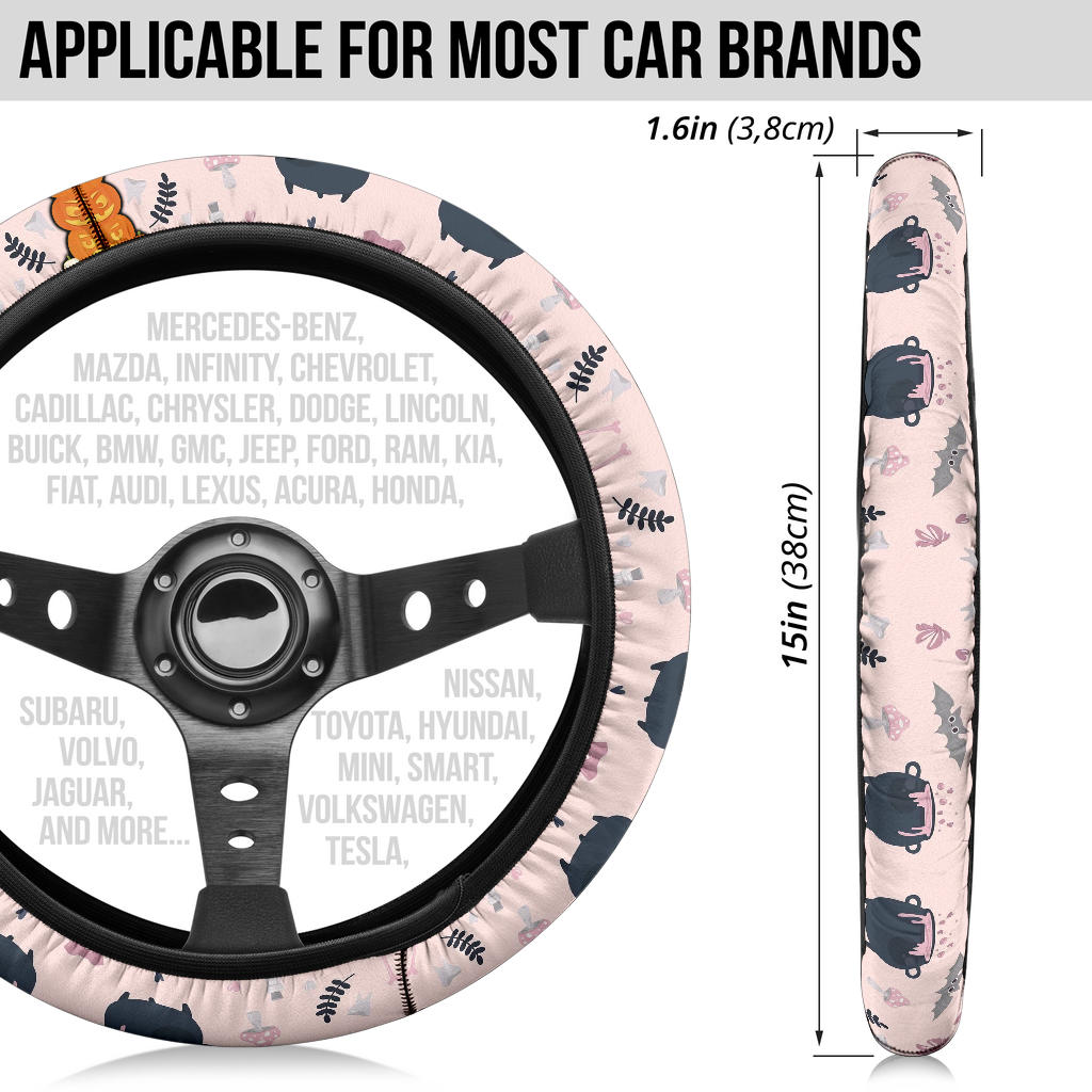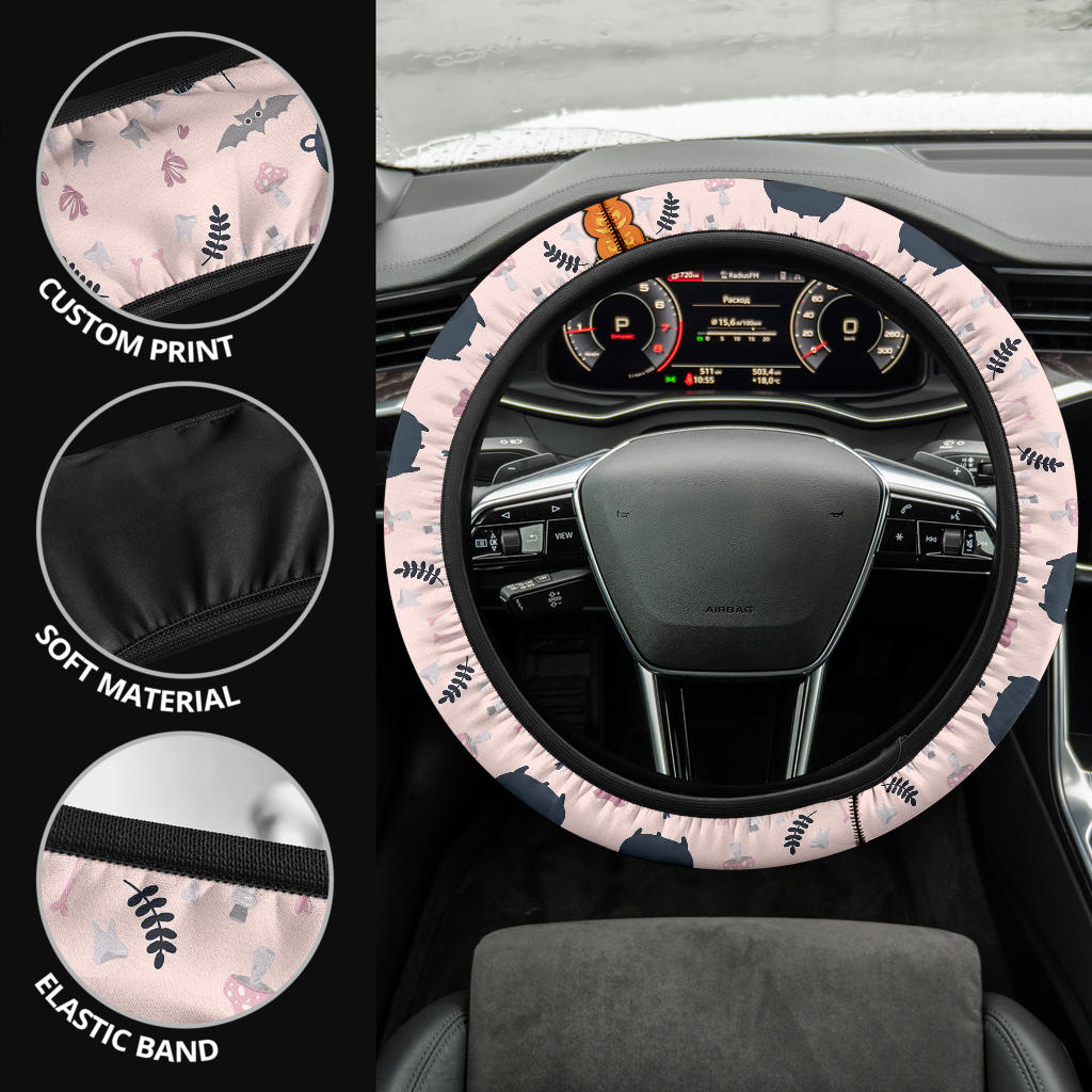 Vintage Halloween Symbol Patterns Pumpkin Coulumn Steering Wheel Cover