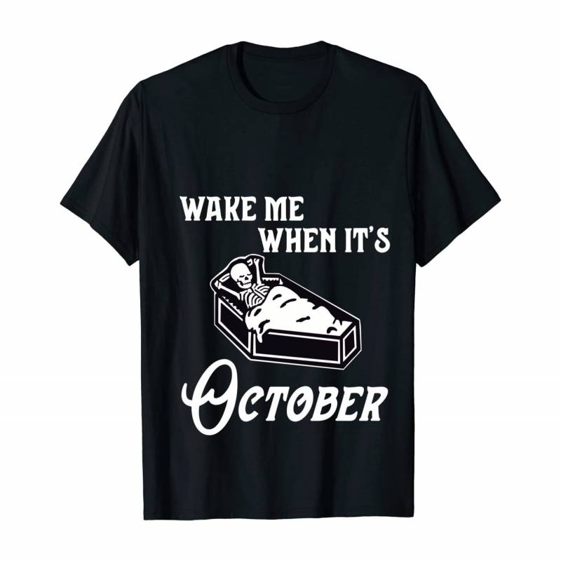 Wake Me When Its October Skeleton Fall Autumn and Halloween Pullover Hoodie, T-Shirt, Sweatshirt, Tank Top, Racerback, Dolman
