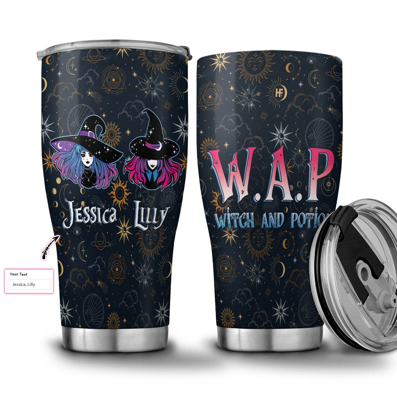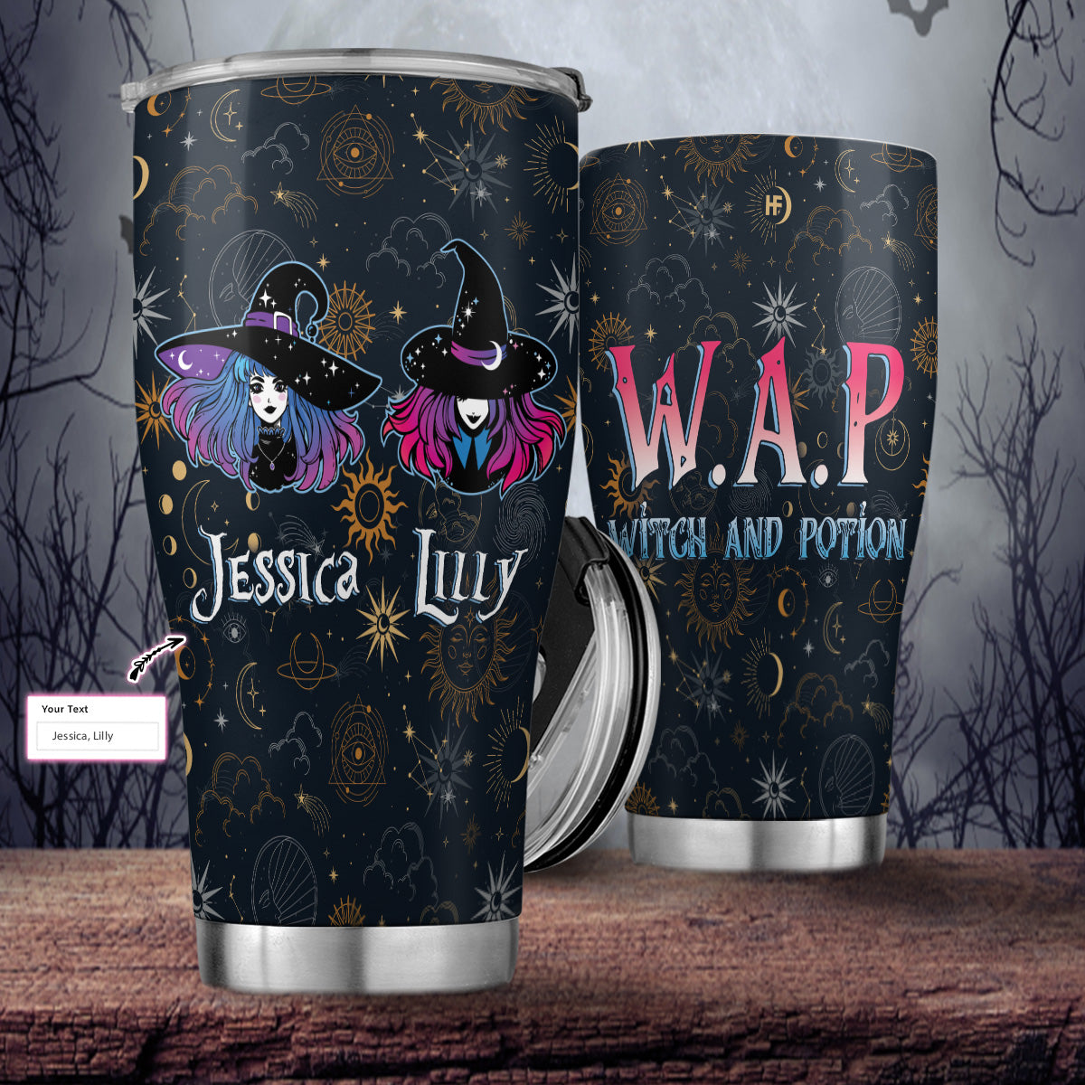 Wap – Witch And Potion Sisters Custom Stainless Steel Tumbler, Personalized Halloween Stainless Steel Cup With Lid
