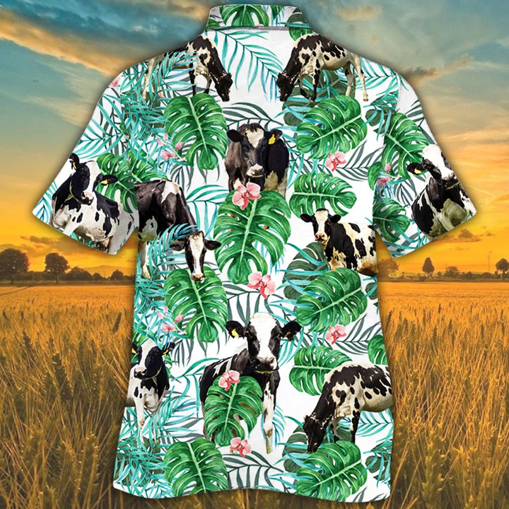 Waybackapparel Holstein Friesian Cattle Lovers Tropical Plant 3D Hawaiian Shirt