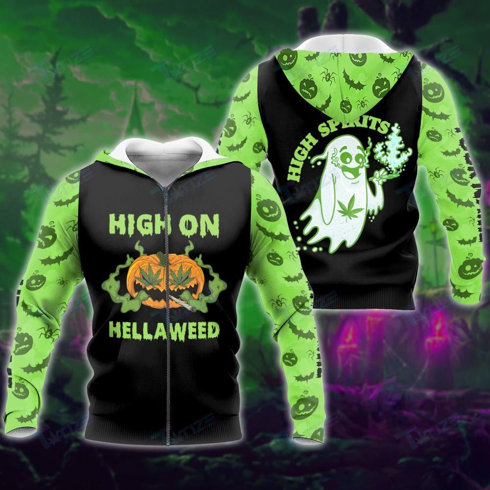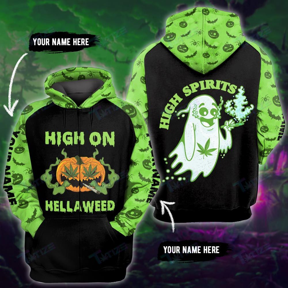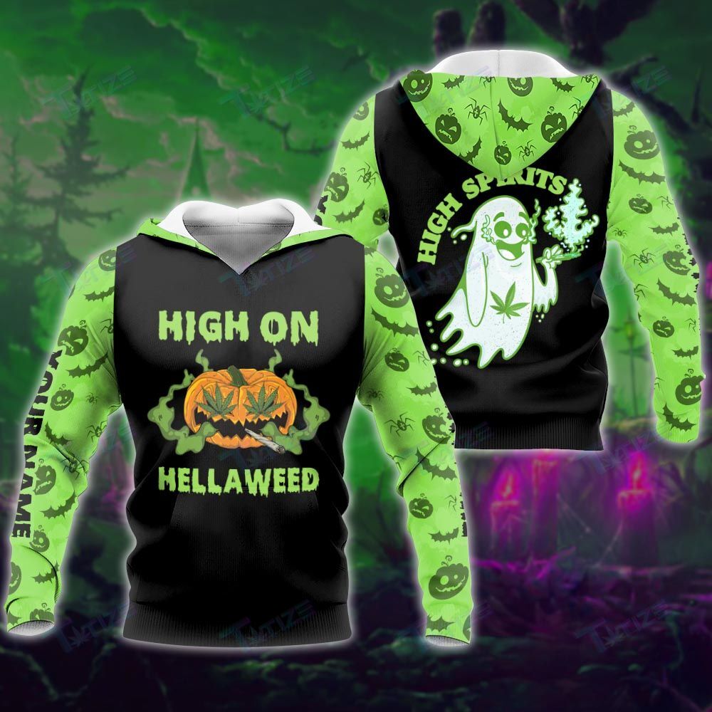 Weed Halloween High On Hellaweed High Spirits Custom Name 3D All Over Printed Shirt, Sweatshirt, Hoodie, Bomber Jacket Size S – 5Xl