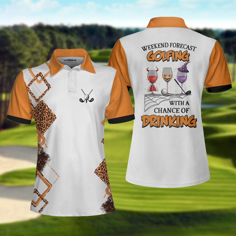 Weekend Forecast Golfing With A Chance Of Drinking Golf Short Sleeve Women Polo Shirt, Halloween Gift For Female Golfers